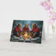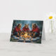 Uma cena encantadora de três ursos em camisas confortáveis com flanela de xadrez assando marshmallows ao redor de uma fogueira em estalo perto de um rio sob o brilho suave de uma floresta iluminada pela lua. O texto dentro pode ser alterado.