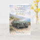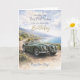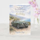 Featuring a stunning illustration of a classic convertible car set against a scenic coastal road, this card carries the message: