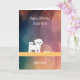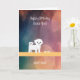 Birthday card for a Lhasa Apso Dog standing on a yellow bar with a designer, colorful background, and an illustrated dog bone. Thanks to the Hungryjpeg for some of the elements in the design.