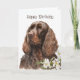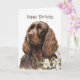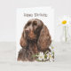 Design de aquarela de um cão de panela de chocolate giro em flores para o aniversário de qualquer um. Todo texto é editável.