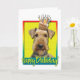 Celebrate a birthday with this whimsical Airedale Dog Greeting Card. With a cupcake balanced on it's head, this design is sure to bring a smile and giggles! BTW, This design has several versions, with different background colors. There is also an invitation to a Party version.