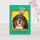 Celebrate a birthday with this whimsical Bernese Mountain Dog Greeting Card. With a cupcake balanced on it's head, this design is sure to bring a smile and giggles! BTW, This design has several versions, with different background colors. There is also an invitation to a Party version.