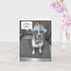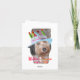 Uma foto em preto e branco de um filhote de cerveja vestindo um bolo de aniversário colorido moldou chapéu de aniversário. O texto personalizável do cobrir diz: "Parece que você está fazendo outro aniversário". O texto personalizável do dentro diz: "Tudo bem - Os aniversários são a maneira da natureza nos dizer para comer mais bolo". Design ideal para qualquer amante de cachorro!
