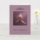 A ballerina leaps through the air in a jete move on this Italian language ballet-themed birthday card. This feminine card is in shades of red, lavender, and raspberry. The customer can change the inside of the card to suit their needs.