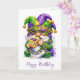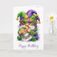 Cartão Birthday Mardi Gras Gnome Eating King Cake