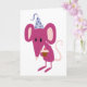 A cute purple mouse holding a cupcake is all dressed up for a party!