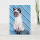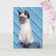 Cartão birthday Siamese kitten on blue wood