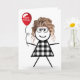 Garota com balão vermelho, cabelo e óculos em fundo branco para aniversário Texto em balão pode ser editado ou excluído. A cor de fundo pode ser alterada.