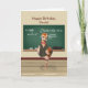 A baby sandhill crane bird is dressed as a physics teacher. In this humorous image on a birthday card for an uncle the bird wears glasses, a bow tie, and a brown vest completed with a gold watch chain giving the appearance of a very serious teacher or student. He stands in front of a green chalk board filled with scientific equations. All text fields are text templates and easily changed or deleted.