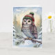 Cartão Birthday Watercolor Owl In Winter Hat