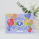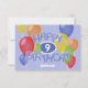 Este cartão de aniversário divertido e colorido para uma rapariga é descarregável e apresenta a mensagem "Feliz Aniversário" soletrada em biscoitos de recorte de fosco azul, dispostos de forma brilhante, na frente do cartão, rodeados por balões multicolores - a mensagem no verso e a idade e o nome da criança podem ser personalizados - dois biscoitos de recorte em forma de balão soam na parte de trás do cartão - o fundo é azul pálido - por katz_d_zynes