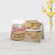 Biscoitos com chip de chocolate amarrados com fita de gingham vermelha e branca e arco de aniversário de amigos