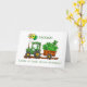Celebre o Dia de São Patrício com este cartão adorável, projetado especialmente para um Bisneto! Um trator xadrez verde passeia por uma estrada de terra, puxando um vagão transbordando de trevos da sorte. Um chapéu de duende repousa no topo, e três balões em forma de trevo flutuam alegremente na frente do trator. A frente apresenta um nome personalizável, adicionando um toque pessoal a este design festivo. Perfeito para compartilhar a alegria do Dia de São Patrício, este cartão é uma maneira divertida e sincera de desejar ao seu Bisneto um dia repleto de amor, sorte e felicidade!