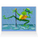 Engraçado cartão "Fique bem" com um sapo e Dr. Duck, seu 'quack'. Texto em alemão.