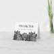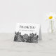 Create custom thank you cards that fit your style. This card features your message and name in bold black lettering accented by antique engraving style illustrations of roses in black and white set against a plain white background.