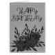 Saia do normal com este cartão de aniversário impressionante de cinza e preto da imprensa botânica. Apresentando um buquê dramático de flores esboçadas sobre um fundo macio texturizado de pedra, a letra de "Parabéns" acrescenta um toque de talento de vintagem com uma reviravolta moderna. Perfeito para qualquer um que abraça uma estética moderna ou simplesmente ama algo um pouco diferente, esta carta traz beleza com vantagem.