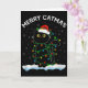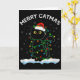 Cartão Black Cat Christmas Light Cat Wearing Santa Hat Me