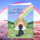 This heartfelt pet sympathy greeting card features a peaceful illustration of a beloved black Cavalier King Charles Spaniel with angel wings gazing toward a flower-lined rainbow bridge beneath a soft blue sky. Designed to bring comfort after the loss of a cherished dog, this touching memorial card offers gentle reassurance and remembrance for grieving pet parents, dog lovers, friends, and family. Thoughtful for condolence messages, remembrance keepsakes, or sending quiet support during difficult moments.