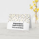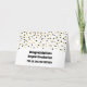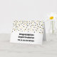 Parabéns no cartão de graduação para sobrinho com padrão de confete preto e ouro e verso sentimental.