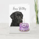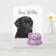 This funny birthday card features a playful Black Lab caught in the act of taste-testing a colorful birthday cake with the humorous message: “I inspected the cake. You're welcome.”
