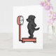 Labrador Negro no Cartão de Férias em Escala para Proprietários de Labrador! Design de desenho do Labrador Negro, bonito, com Pup de laboratório preto, se perguntando algo na escala. O que ele/ela acha na escala? É possível se preocupar com os pesos? Ou ele está pensando sobre as próximas refeições? Criada por Naomi Ochiai.
