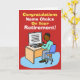 Um Cartão de Reforma Divertido para um macho negro que você pode personalizar com o nome do receptor. Homem negro se aposentando. Design é uma ilustração de um homem trabalhando em sua mesa usando um computador. Colega de escritório negro se aposentando.