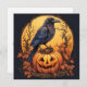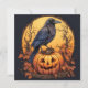 Esta placa apresenta um pálido raven preto empoleirado em uma lanterna jack. Sinta-se à vontade para editar o texto para tornar este cartão de Dia das Bruxas pessoal e de algum tipo.