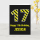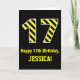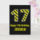 Cartão Black & Yellow Striped "17"; 17th Birthday + Name