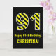 Cartão Black & Yellow Striped "91"; 91rua Aniversário + N