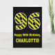 A frente deste design de cartão de saudação de aniversário ousado e divertido apresenta um grande número "96", com um padrão de listras preto e amarelo. Também apresenta a mensagem "Feliz 96º aniversário", e um nome personalizado. O fundo da frente é preto colorido. O dentro apresenta uma mensagem de saudação de aniversário editável, ou talvez pudesse ser apagado e deixado o vazio se uma mensagem fosse escrita manualmente. Um cartão de aniversário personalizado como este pode ser uma maneira divertida de enviar uma mensagem em comemoração do 96º aniversário de alguém. [~Z0000382]