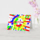 Um cartão de cumprimentos de aniversário para qualquer um com minha design de tinta vermelha, verde, azul e amarela espalhada. O texto diz "Parabéns".