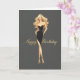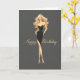 A timeless and sophisticated birthday card featuring a glamorous blonde in a sleek black dress with gold accents, set against a dark, elegant background. Perfect for celebrating someone with refined style, confidence, and effortless presence.