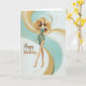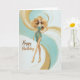 A glamorous birthday card featuring a stylish blonde in a teal and gold dress with flowing, artistic accents that create a sense of movement and elegance. Perfect for celebrating someone who shines with confidence, grace, and vibrant energy.