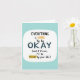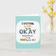 O cartão de boas-vindas apresenta uma forma quadrada branca arredondada e limpa, com uma borda azul clara e calorosa. Dentro, você encontrará uma mistura de estilos de fonte e cores criando uma citação motivacional que lê "TUDO" em letras negrito e vibrante multicolorido no topo. Abaixo, "is GOING" está escrito em texto preto e amarelo menor, seguido de "TO be" em texto preto pequeno. A frase termina com um tranquilizante "OK" em letras grandes azuis escuras, e "(e se não estiver, eu estarei DIREITO ao seu lado)" em texto preto menor, com "DIREITA" sublinhado em amarelo alegre. Este cartão exude positividade e conforto, perfeito para enviar bons desejos e apoio. 🌟 🌷