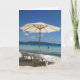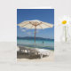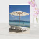 Photographic card of a beach umbrella and lounge seats - perfect for holidays, farewells & retirements - customize front & inside message.