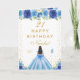 Cartão Blue Floral Dark Skin Girl Birthday