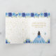 This elegant and glamorous birthday card can be personalized with a name or title such as daughter, granddaughter, niece, friend etc. The design features a beautiful princess with dark hair and dark skin in a blue ball gown. The text combines handwritten script and modern sans serif fonts for a classy and sophisticated look. The floral arrangements, butterflies and gold confetti create the perfect blend of rustic and chic.