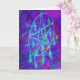 Belo design azul de pentáculo em fundo roxo profundo faz um cartão de saudação impressionante. Carimbo de correio para uma apresentação maravilhosa.