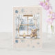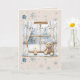 Cartão Blue Silver Snowflakes Window Teddy Bear Christmas