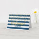 Bem-vindo ao cartão de equipe para novos funcionários em listras azuis e brancas Marinhos e padrão de confetti dourado.