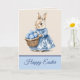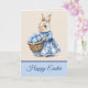 Cartão Blue Toile Mother Rabbit n Basket of Easter Eggs