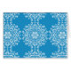 Esta mandala branca senta-se sobre um fundo azul verdadeiro. As cores são muito calmantes e pacíficas. Parte da coleção Losonieth Mandala.