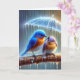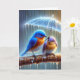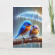 Par de pássaros azuis debaixo de um guarda-chuva em uma tempestade para você obrigado. O texto pode ser alterado.