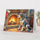 Cartão Bluetick Coonhound Fireplace with Christmas Lights