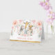 This adorable folded thank you card features a collection of pretty jungle animals and feminine blush pink flowers.