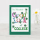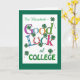 Um cartão de boas-vindas da Faculdade para personalizar, com letras coloridas brilhantes, trevas de quatro folhas e ferradura para sorte! Um design digital baseado em texto de Judy Adamson, você pode adicionar o nome do destinatário à frente e mudar a mensagem dentro, se desejar.