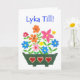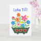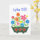Um cartão floral de boa sorte com a saudação em sueco, de uma colagem de papel pintada à mão por Judy Adamson. Por favor, entre em contato comigo na minha loja se você quiser que o texto do cobrir frontal seja alterado e o dentro seja vazio para a sua própria mensagem.
