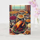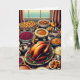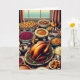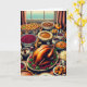 Um cartão para desejar aos amigos e familiares um Feliz Dia de Ação de Graças com uma ilustração divertida em estilo de história em quadrinhos de um jantar de peru.