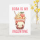 Uma carinha fofa dentro de um delicioso copo de chá de bolhas rosa com canudo diz, Boba é meu namorado. Dentro está em branco para que você possa escrever a mensagem perfeita.