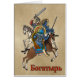 Uma representação de uma batalha entre uma ponte russa e um guerreiro asiático, ambos em cavalo. O texto cirílico (russo) que lê "Б о а т ы гьрs" (Bogatyr) também é exibido. Bogatyri são personagens heroicos encontrados em épicos eslavos medievais. São parecidos com os cavaleiros da literatura ocidental. A maioria das histórias sobre bogatyri gira em torno do tribunal de Vladimir I de Kiev (958-1015). Presume-se que alguns bogatyri sejam números históricos. Bogatyri protegeu a terra e as pessoas russas contra invasores, especialmente os Tatares. A alguns foram atribuídos poderes e força que eram quase divinos. Esta imagem é adaptada a partir de uma linha preta e branca ilustrando em "П о с т ь е о в с л а в н ы х б о г а т ы р я х з л а т о м г р а д е К и е в е и в е л и к о й н а п а с т и н а з е м л ю Р у с с к у ю Cidade de Ouro Kiev e o Excelente Scourging da Terra Russa), por Tamara Probhiotal; publicado na URSS em 1974.